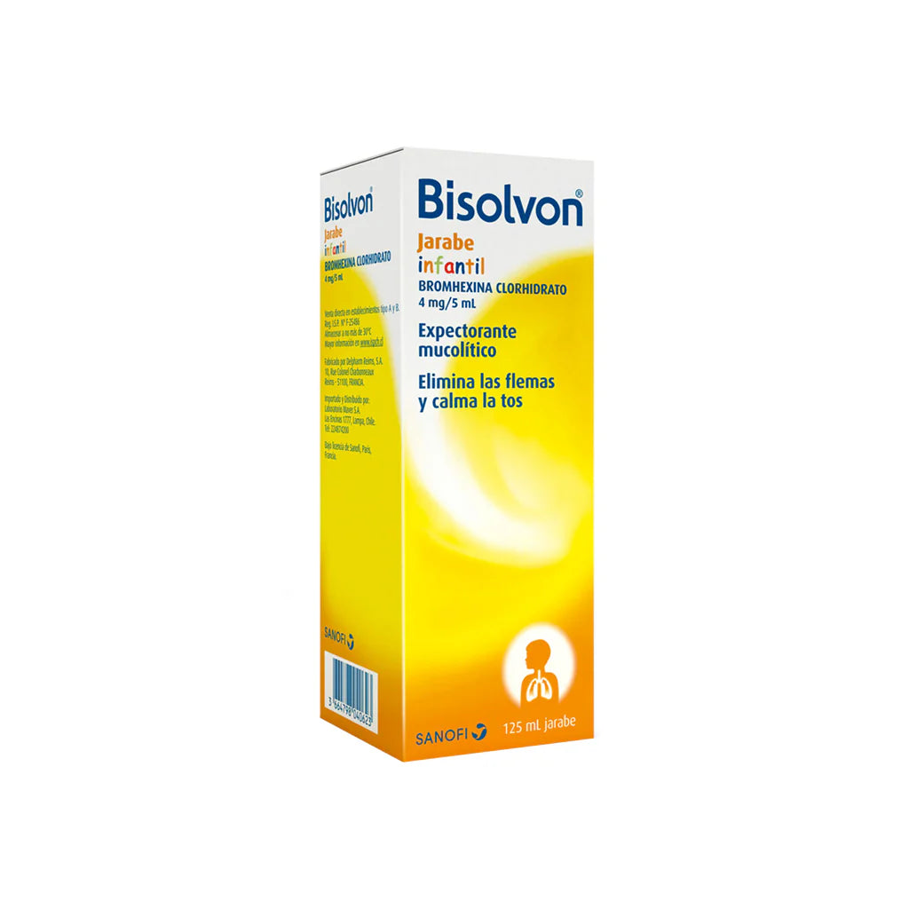 Advertencias: Bisolvon está contraindicado en pacientes con hipersensibilidad conocida a la bromhexina o a otros componentes de la formulación. El uso de este producto está contraindicado en el caso de trastornos hereditarios raros que puedan ser incompatibles con alguno de los excipientes del producto. Para mayor información del medicamento (condición de almacenamiento u otro) dirigirse a: https://registrosanitario.ispch.gob.cl/Ficha.aspx?RegistroISP=F-1457/18